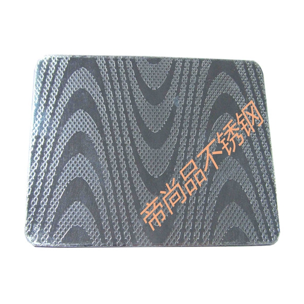 2、壓紋后再磨鏡面,凹下去的位置會保持不銹鋼的亞光色,凸起來的位置會有反光的鏡面效果;