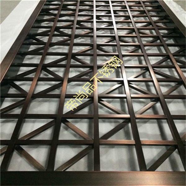 本公司專業(yè)生產不銹鋼屏風制品加工,屏風工藝:所有焊接口保證平整,拼縫口保證沒有縫隙。外框刨坑折彎,花格全部焊在則面。一面不銹鋼花格門焊死固定到外框架。另一面不銹鋼花格門用螺絲固定做到可以折裝,顏色是在做好后鍍上去的,但可以保證工藝完全統(tǒng)一,無色差,防指紋。