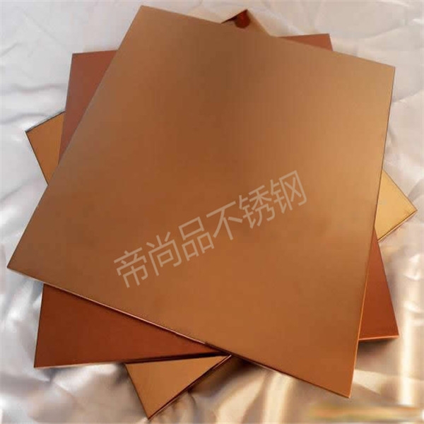 1)采用德國先進水鍍技術,使不銹鋼表面鍍上一定厚度的真紫銅,紅銅,黃銅。達到能做舊拉絲仿古高端裝飾,解決了以往銅鋼復合板材料由高分子膜復合易分離、起泡的缺點。