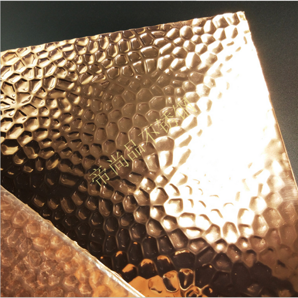 2、壓紋后再磨鏡面,凹下去的位置會保持不銹鋼的亞光色,凸起來的位置會有反光的鏡面效果;