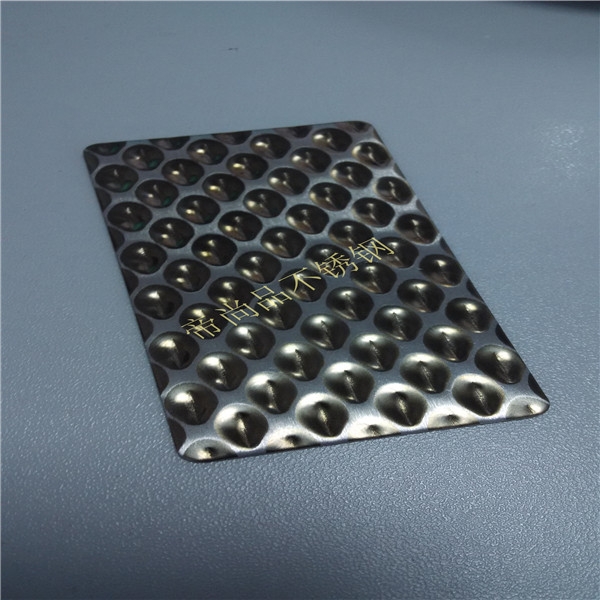 2、壓紋后再磨鏡面,凹下去的位置會保持不銹鋼的亞光色,凸起來的位置會有反光的鏡面效果;