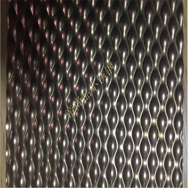 不銹鋼壓花板是在不銹鋼板表面施以凹凸的花紋,用于對光潔度和觀賞性較高的地方,是用帶有圖案的工作輥軋制的,其工作輥通常用侵蝕液體加工的,板上的凹凸深度因圖案而不同。       花紋:小米粒、珍珠米、珠光板、小方格紋、菱形方格紋、仿古方格紋、皮革紋、編織紋、斜紋、菊花紋、冰竹紋、砂光板、立方體、自由紋、石紋板、蝶戀花、編竹紋、小菱形、大橢圓、熊貓紋、歐式花紋、元寶、麻布紋、大水珠、馬賽克、木紋、萬字花、萬福臨門、如意云朵、方格紋、彩花紋、彩圓圈紋、魚鱗紋、細網紋、心形紋等。