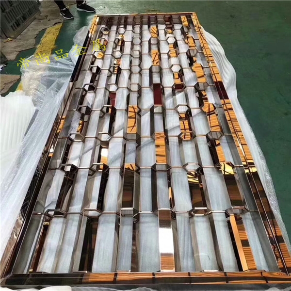 本公司專業生產不銹鋼屏風制品加工,屏風工藝:所有焊接口保證平整,拼縫口保證沒有縫隙。外框刨坑折彎,花格全部焊在則面。一面不銹鋼花格門焊死固定到外框架。另一面不銹鋼花格門用螺絲固定做到可以折裝,顏色是在做好后鍍上去的,但可以保證工藝完全統一,無色差,防指紋。