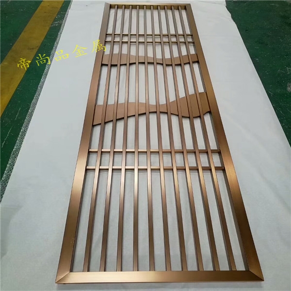 本公司專業生產不銹鋼屏風制品加工,屏風工藝:所有焊接口保證平整,拼縫口保證沒有縫隙。外框刨坑折彎,花格全部焊在則面。一面不銹鋼花格門焊死固定到外框架。另一面不銹鋼花格門用螺絲固定做到可以折裝,顏色是在做好后鍍上去的,但可以保證工藝完全統一,無色差,防指紋。